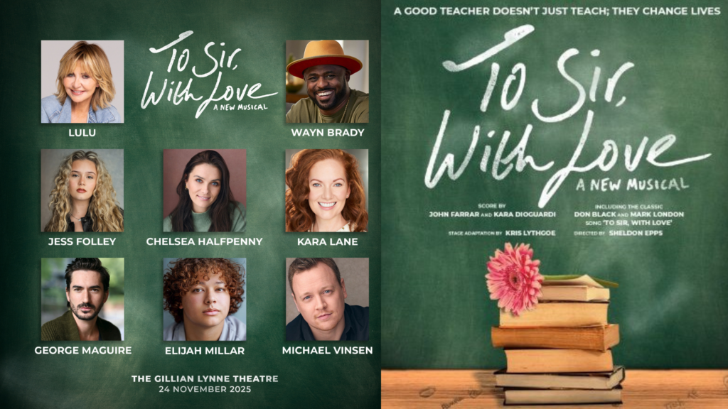 Producers Kris Lythgoe and Darren Bell are delighted to announce that Jess Folley, George Maguire, Chelsea Halfpenny, Kara Lane, Michael Vinsen and Elijah Millar complete the cast of the concert performances of TO SIR, WITH LOVE – A New Musical at the Gillian Lynne Theatre on Monday, 24 November 2025 for two performances only with a sold out matinee and very few tickets remaining for the evening performance.