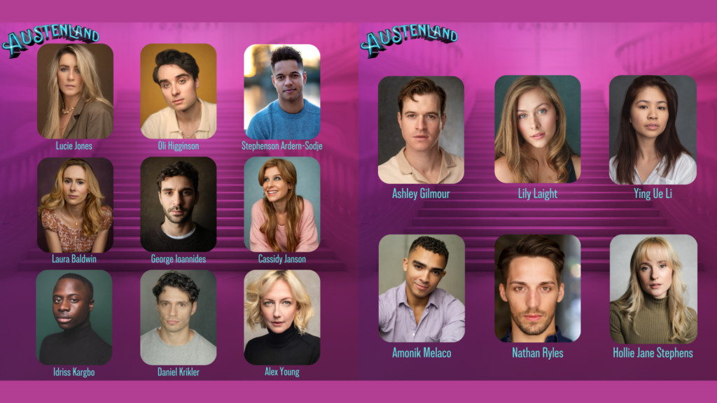 AUSTENLAND will be directed by Jonathan O’Boyle (Cruel Intentions, The Other Palace; Calendar Girls, UK Tour) with choreography by Joanna Goodwin (My Fair Lady, Leicester Curve; An Officer and a Gentleman, UK & Ireland Tour), musical supervision, orchestration and arrangements by Matthew Malone (The Book Thief, Leicester Curve, Carousel, Regent’s Park Open Air Theatre), music direction by Natalie Pound (The Creakers, Southbank Centre & Theatre Royal Plymouth; Lovestuck, Theatre Royal Stratford East), design by Polly Sullivan (Cruel Intentions The 90s Musical, The Other Palace & tour; Describe the Night, Hampstead Theatre), lighting by Jack Weir (The Woman In White, Electric Theatre; One Night Only, Sandi Toksvig, Theatre Royal Drury Lane) and sound by Sound Quiet Time (Clueless, Churchill Theatre; Manic Street Creature, Southwark Playhouse, London)