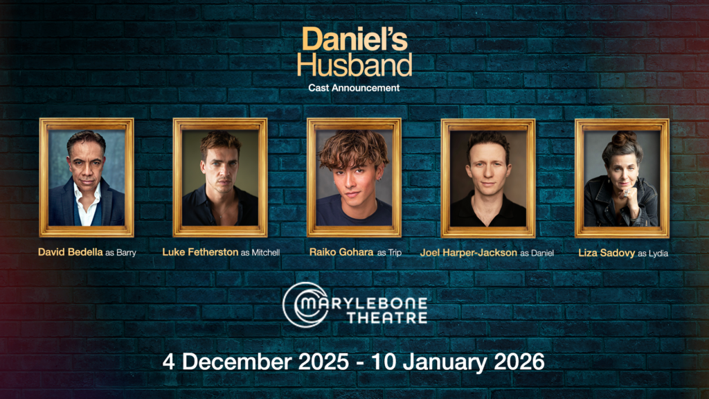 Plastered Productions is delighted to announce the full cast for Michael McKeever’s hit off-Broadway play DANIEL’S HUSBAND which will make its UK Premiere at the Marylebone Theatre in London for a limited season from 4 December 2025 – 10 January 2026, directed by Alan Souza. There will be a national press night on 9 December 2025.