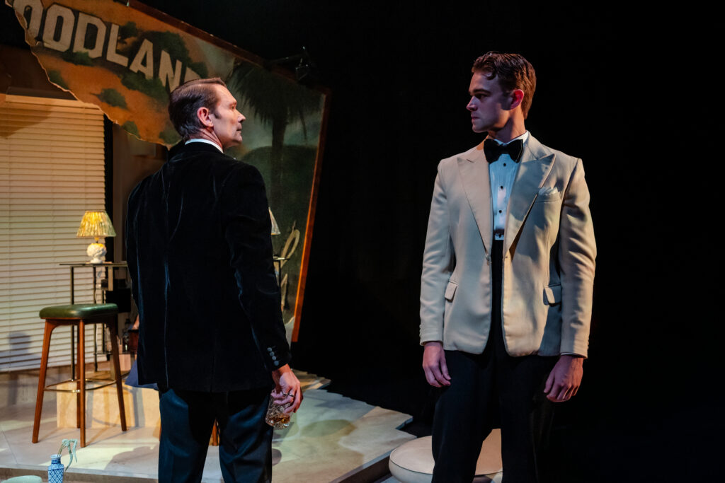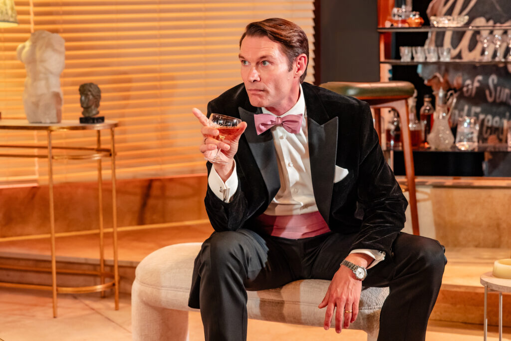 Tallulah Bankhead – magnetic, mercurial, and unapologetically sharp-tongued – stops in for a cocktail at the home of former screen idol turned interior designer Billy Haines, who may – or may not – be planning to disappear from the town he once ruled.